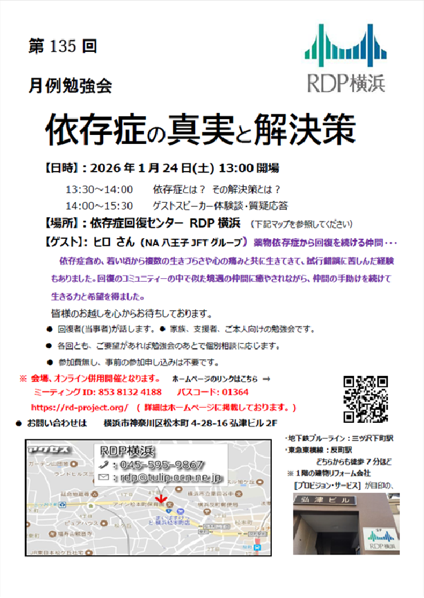 ☆2026年1月☆第135回月例勉強会 依存症の真実と解決策の開催のお知らせ!